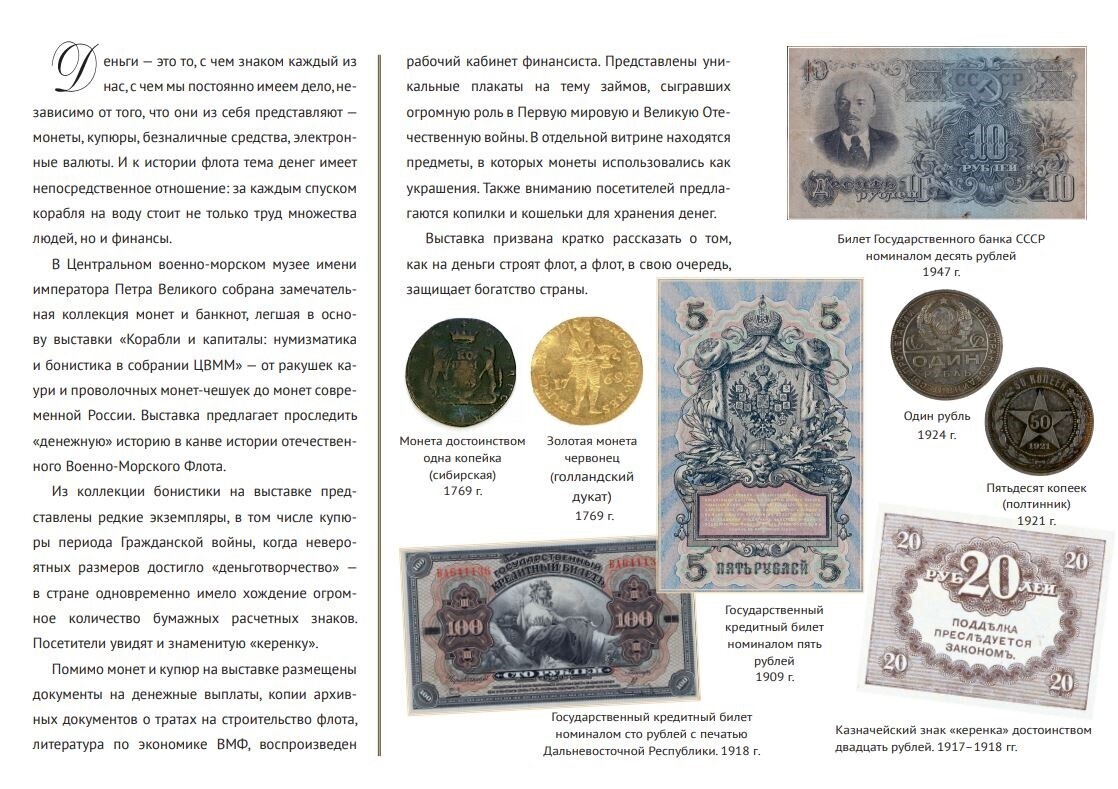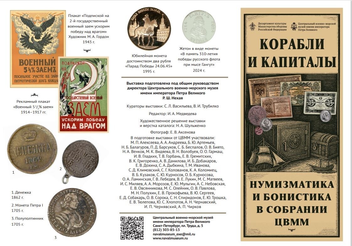 В Центральном военно-морском музее имени императора Петра Великого 11 декабря 2025 года открылась временная выставка «Корабли и капиталы. Нумизматика и бонистика из собрания ЦВММ».