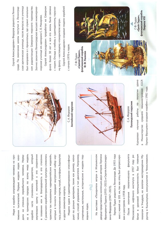 С.А.Федоров также как и Г.Ф.Пудан родился в Ленинграде. Окончил Ленинградское арктическое училище, позже Ленинградское высшее инженерное морское училище им.адмирала С.О.Макарова. Сергей Александрович проработал на Северном флоте более 30 лет и вся его жизнь была связана с морем. Отсюда и любовь к судомоделизму. Свои корабли Серегей Александрович начал создавать еще в 1970-х годах.