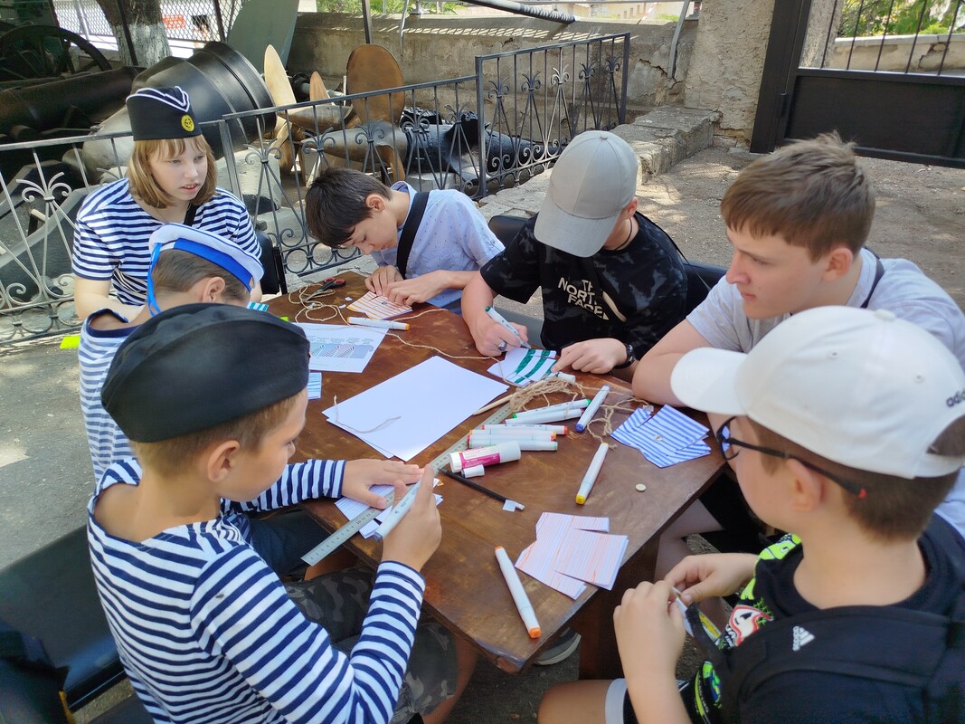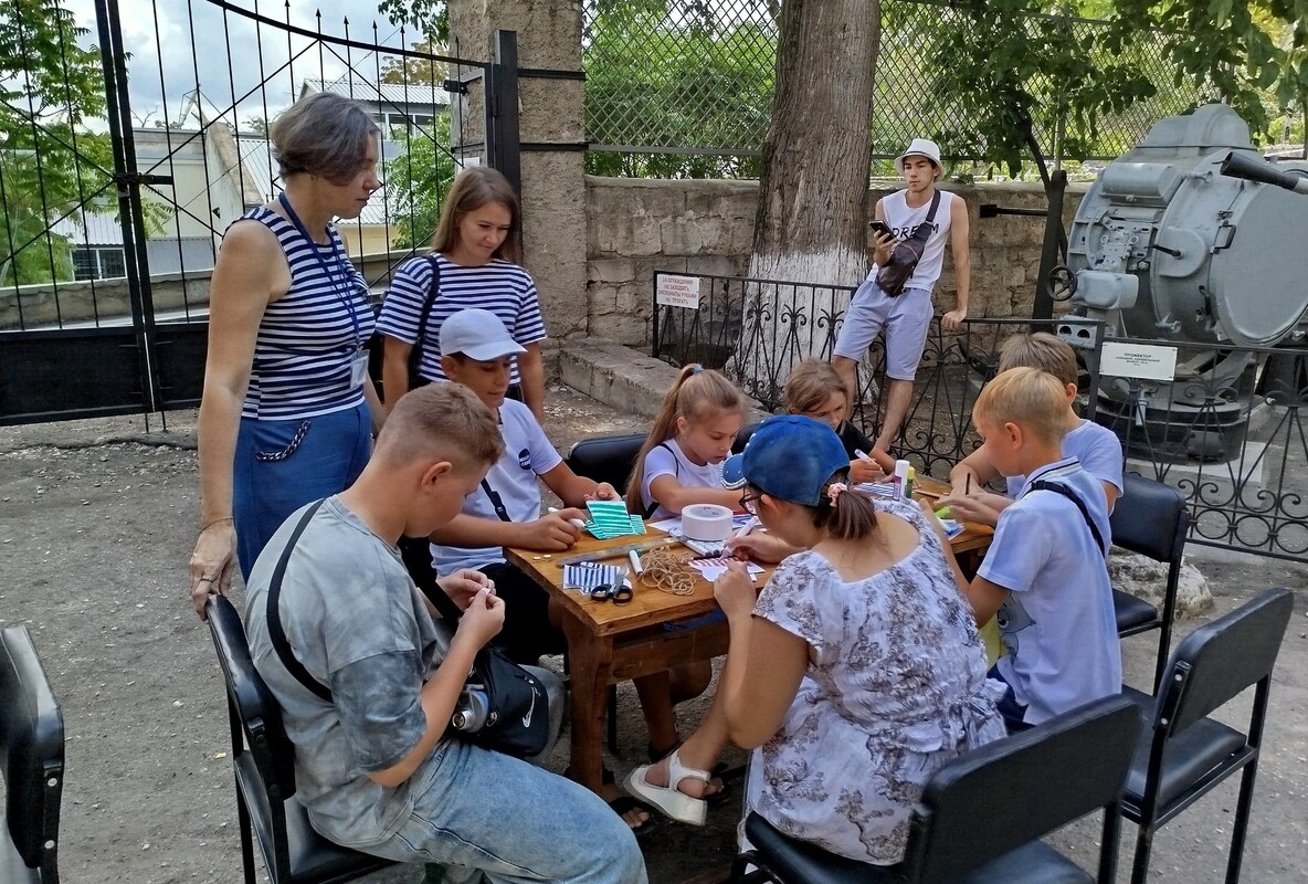 Праздник начался с интеллектуальной разминки: ребята дружно отвечали на загадки на военно-морскую тематику, проявив смекалку и знания. Затем началась творческая часть. Под руководством заместителя заведующего филиалом Ольги Бойко и младшего научного сотрудника музея Алины Рыбинцевой юные гости своими руками создали памятные сувениры — яркие открытки в виде тельняшки и практичные салфетки под кружки и тарелки с характерной полосатой символикой.