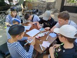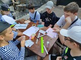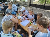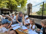 Пока дети творили, Ольга Бойко увлекла их захватывающим рассказом об истории возникновения и бытования тельняшки в мире и в России, от ее первых прообразов до статуса неизменного символа доблести русских моряков.