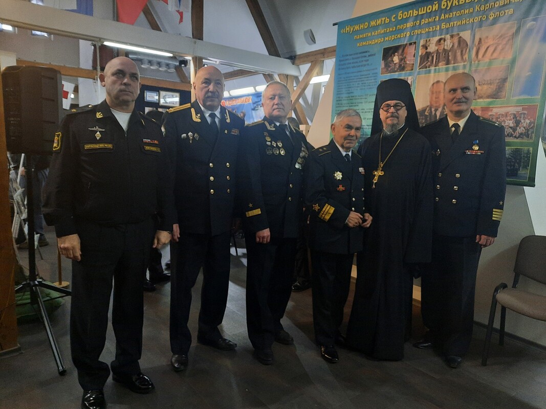 С приветственными словами к собравшимся обратились заведующий филиалом ЦВММ «Музей Балтийского флота» А.В. Коваленко, командир БВМБ контр-адмирал А.В. Жовтоножко, архимандрит Софроний, младший научный сотрудник музея Н.В. Жуков, вице-адмирал В.И. Литвинов и участник специальной военной операции капитан 2 ранга Е.В. Масликов. В своих выступлениях они подчеркнули мужество, отвагу и высокий профессионализм воинов морского спецназа, чья история нашла отражение в новой выставке.