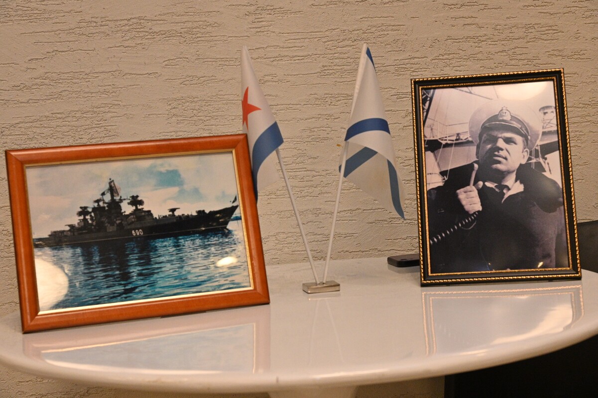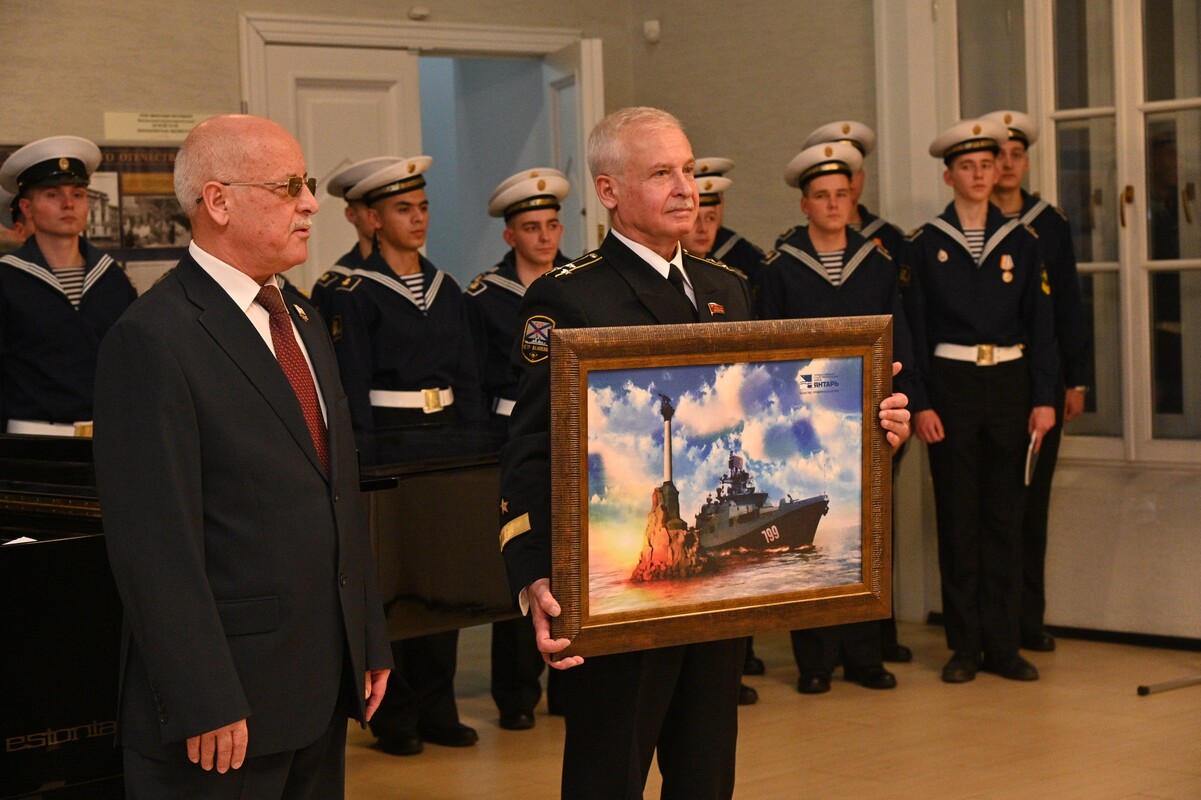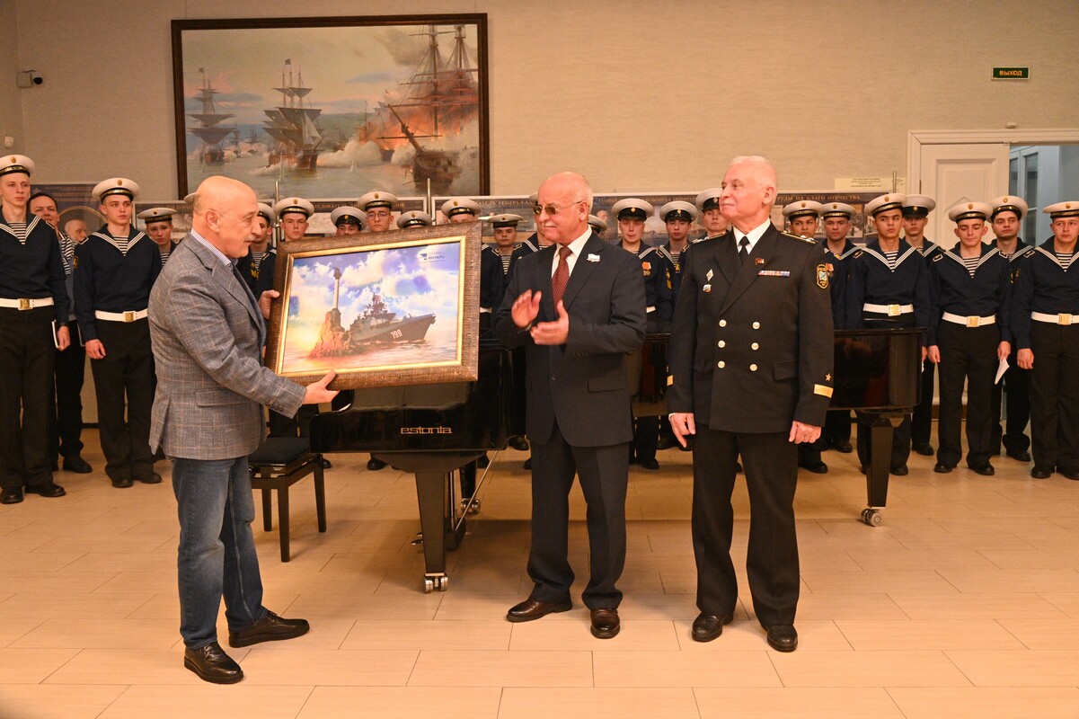 Особенно трогательным и символичным моментом вечера стала церемония передачи в дар музею картины «БПК «Адмирал Макаров». Этот дар преподнесли ветераны ВМФ, братья Владимир Яковлевич и Александр Яковлевич Зубовы, выполняя просьбу первого командира корабля, капитана 1 ранга Валентина Александровича Чкалова. История братьев неразрывно связана с этим судном: Владимир вошел в его первый экипаж, а Александр, с детства бывавший на борту, после окончания училища продолжил службу и семейную традицию на том же большом противолодочном корабле.