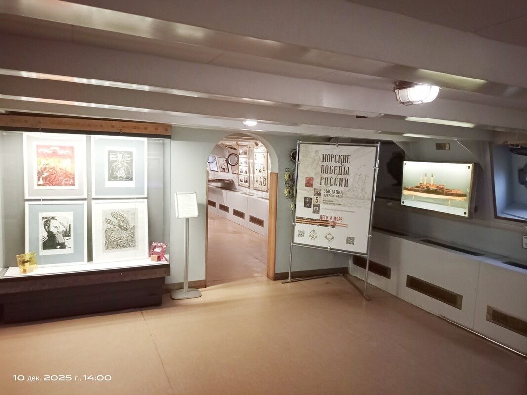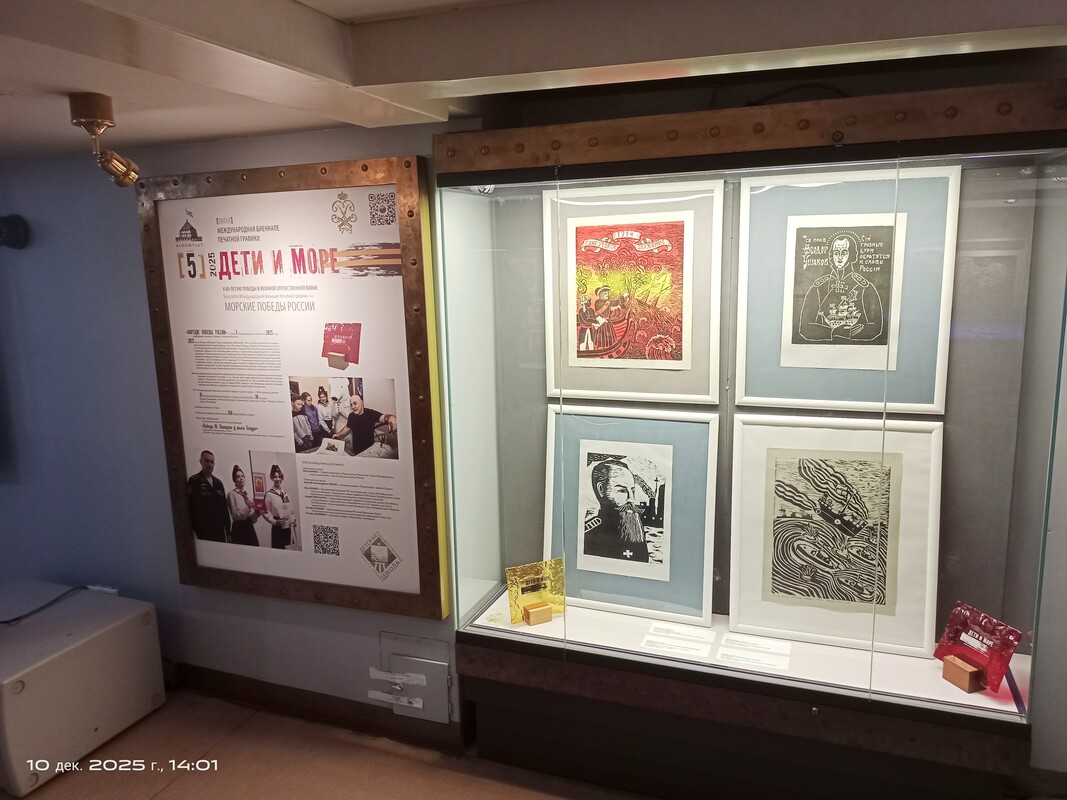 В филиале Центрального военно-морского музея имени императора Петра Великого на крейсере «Аврора» открылась выставка победителей V Международной биеннале печатной графики «Дети и море» – 2025". Экспозиция носит название «Морские победы России» и посвящена 80-летию Победы в Великой Отечественной войне.