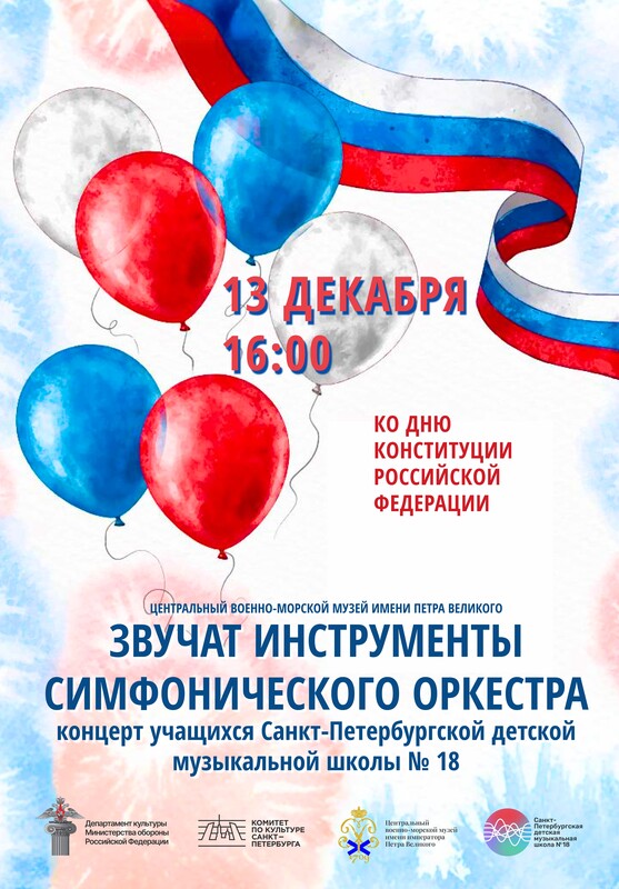 13 декабря в 16 часов приглашаем вас в Центральный военно-морской музей на концерт «Звучат инструменты симфонического оркестра». Своим искусством вас порадуют учащиеся Санкт-петербургской детской музыкальной школы №18.