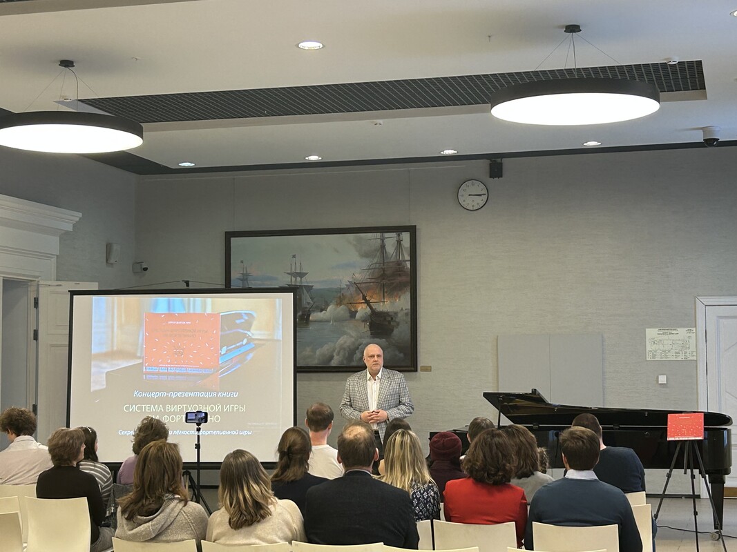 Музыкальная программа в музее продолжилась и накануне праздника. В рамках проекта «Музыкальный салон в Морском музее» состоялся концерт-презентация книги Сергея Долговского «Система виртуозной игры на фортепиано». Известный музыкант, пианист и фортепианный мастер не только представил труд, ставший итогом многолетних исследований, но и порадовал слушателей виртуозным исполнением ноктюрнов и этюдов Фредерика Шопена.