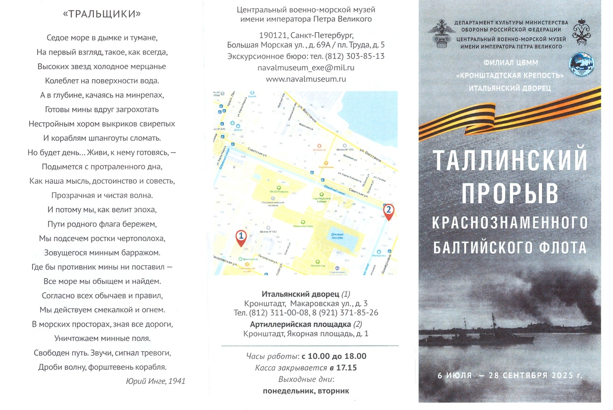 Выставка "Таллинский прорыв Краснознаменного Балтийского флота" в Итальянском дворце дает посетителям возможность ознакомиться с событиями тех дней, узнать о героях Таллинского прорыва и увидеть предметы, им принадлежавшие.