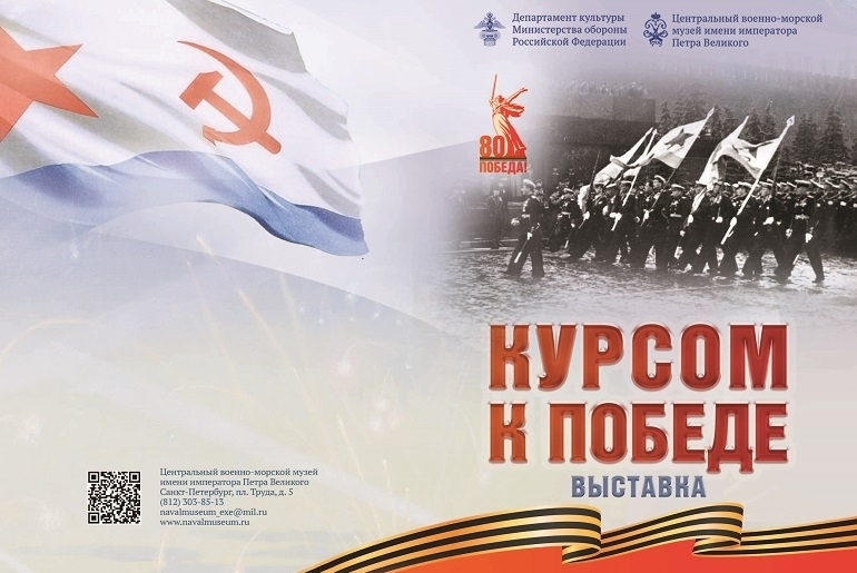 При подготовке выставки "Курсом к Победе", ставшей самой масштабной выставкой года, посвященной 80-летию Победы в Великой Отечественной войне, приняли участие практически все музейные фонды. В экспозиции представлены уникальные реликвии военных лет, в том числе предметы, относящиеся к героическим и трагическим страницам истории Центрального военно-морского музея в годы блокады Ленинграда. Многие предметы имеют мемориальный характер и хранят память о выдающихся флотоводцах и моряках-героях, их ратном труде и подвигах. Среди предметов выставки также работы, выполненные талантливыми художниками и фронтовыми фотокорреспондентами в боевой обстановке.